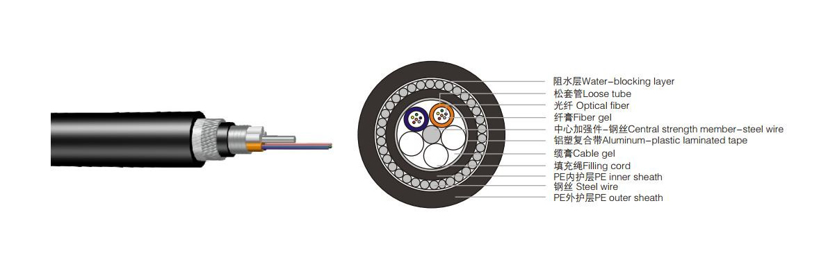 • 鋼絲鎧裝光纜又增強了光纜耐側壓能力及抗拉力。